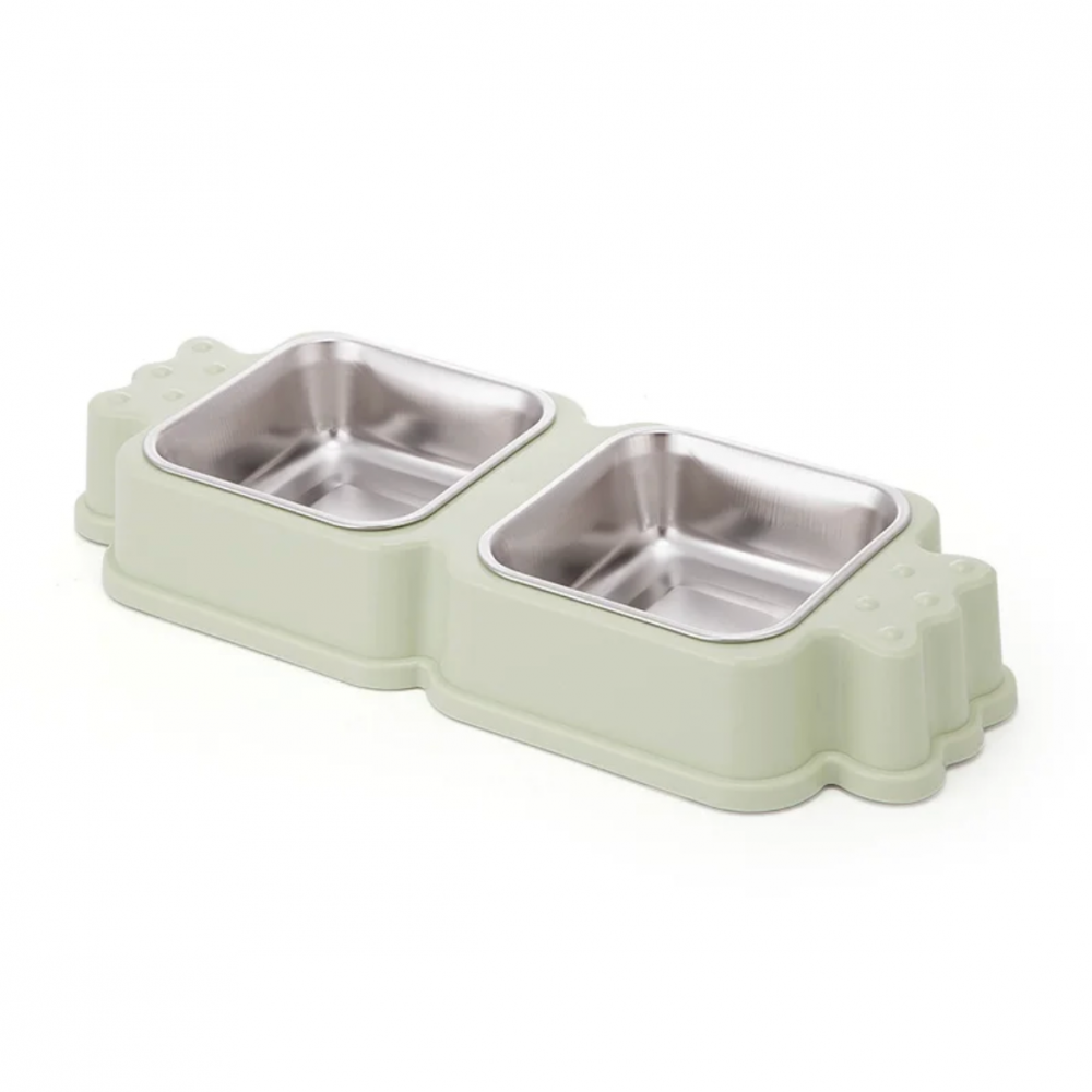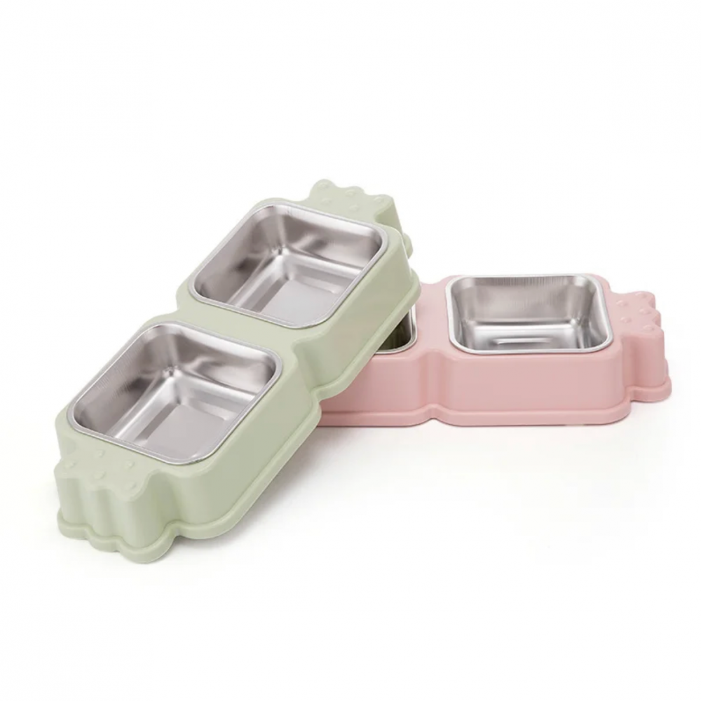 صحن طعام مع معدن مناسب للقطط والكلاب على شكل حلوى بألوان مختلفة.